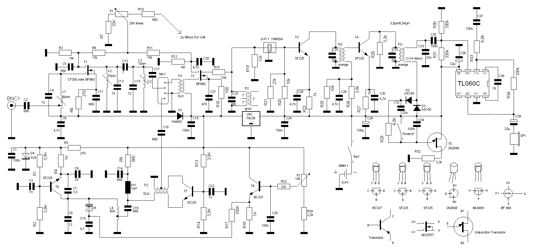 kompletten Peilempfängers beschrieben. Das akustische S-Meter wird durch einen Doppelbasistransistor und
