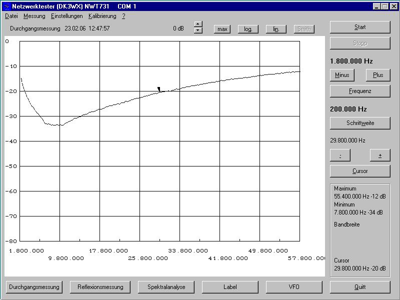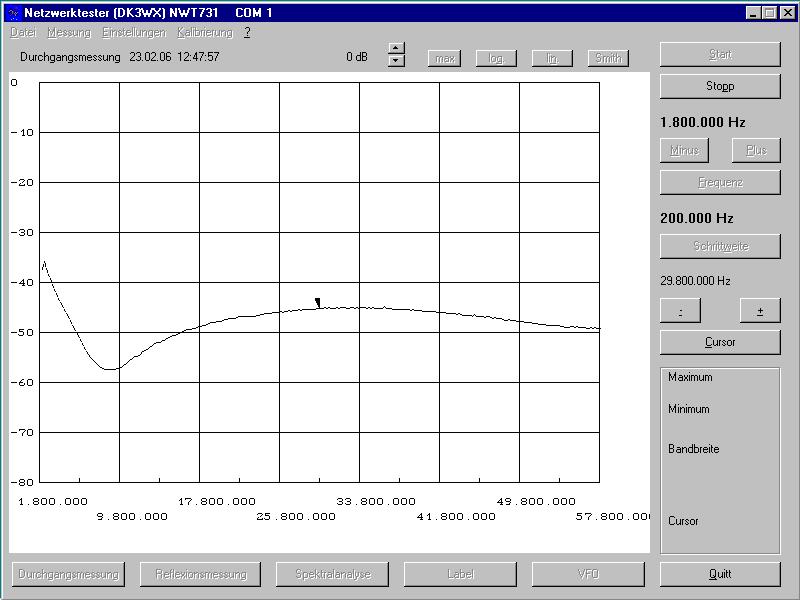 führt bestenfalls zu einem SWR von 1,25. Ich dimensioniere den 9-fachen Wert und erreiche 25 dB Eingangsreflexion entsprechend einem SWR von 1,12.
